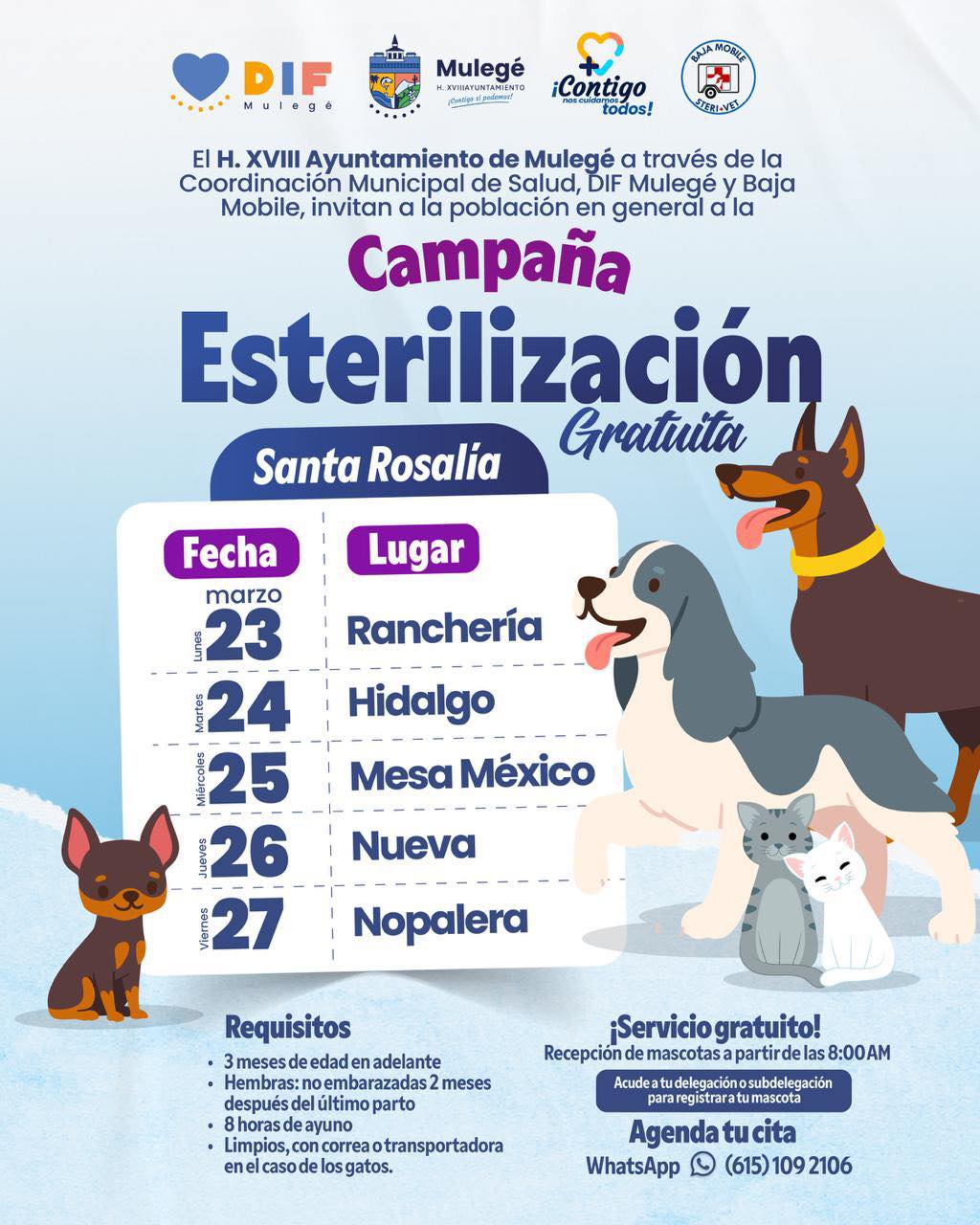 REACTIVA AYUNTAMIENTO DE MULEGÉ CAMPAÑA GRATUITA DE ESTERILIZACIÓN PARA PERROS Y GATOS19 de marzo de 2026, 3:39 p. m.